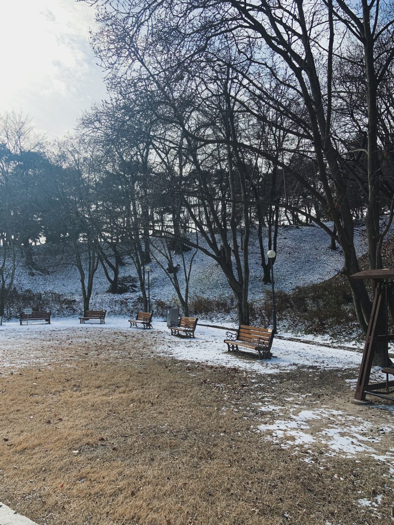 I had many different ideas about how to make sense of the time I’d spend here. I anticipated the end of August, which had started somewhere else. Then, I counted every week until my first full month, and the second, third, and then, with two more weeks (fourteen weeks and two days), I reached the 100th day milestone of every meaningful date — 100 days in Korea, in Daejeon, or as a KAIST student. Between the Equinox that announced the end of Summer, and the Winter Solstice just a few days ago, my first full season passed me by as well. A beautiful Autumn, freezing cold and full of that special type of mixed feeling that exudes from the red, orange and yellow trees. I saw myself in the bareness of their trunks, in the gardens that had been so densely full of leaves, and which seemed to be keeping so many secrets, before the cold stripped them naked, all while I layered jumpers and coats and jackets, trying to keep myself from the cold and from the helplessness of being outside my comfort zone.