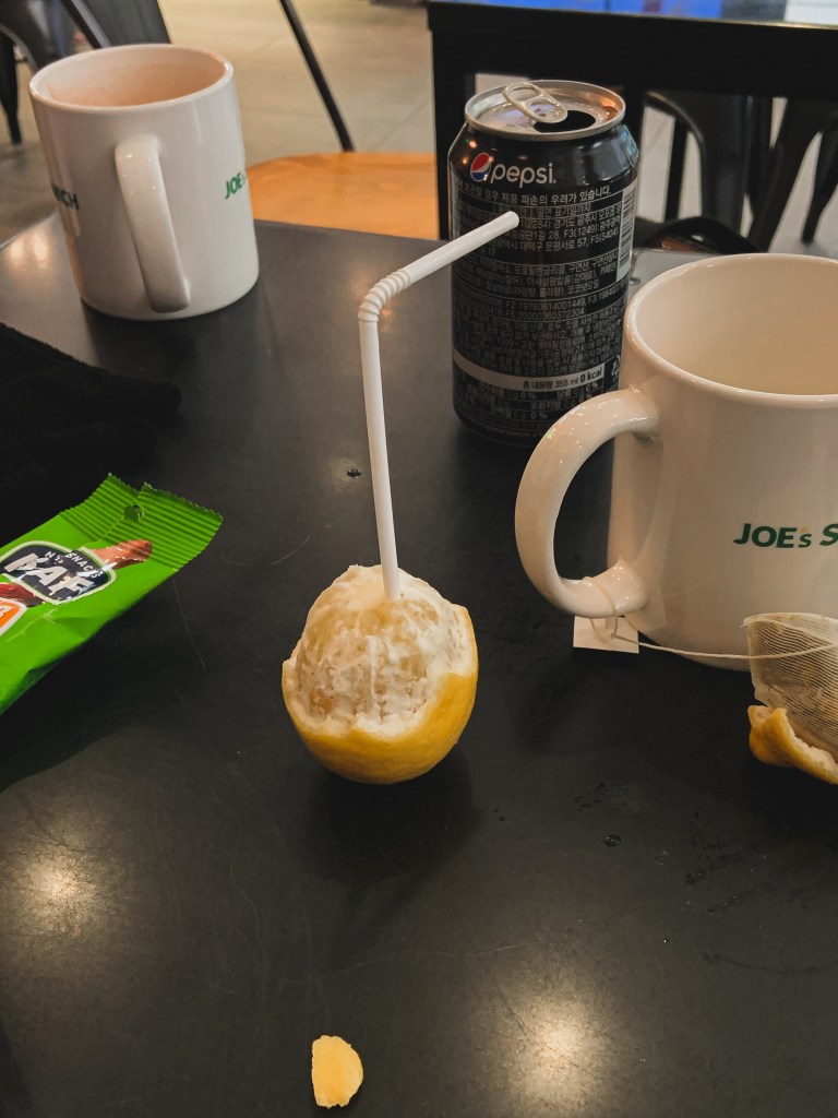 I missed weightlessness, almost paradoxically, because I realised that having no bonds or roots tying me to the ground weighed me down. Acknowledging the existence of this burden was surprising and tough, and it sent me spiralling. Because of that, I remember well the ordinary, but very meaningful, joy I felt when I got tangerines as a gift for the first time, from a friend who had just returned from Jeju. Three small ones, a thin, glossy skin, and they told me we had a bond that could last longer than the team project we had done together. A few days later, I got another one, from one of my labmates, and then a full bag, from one of the lovely ladies that work at the convenience store in my dormitory, who likes me very much and lets me call her “aunt”. Whenever I go to church, I leave with one, or two — it might be even three, if you refuse even once. This is how, after a few weeks of walking on eggshells, not quite sure if I meant anything to the people who treated me well, I seemed to be collecting more and more little testimonies of the nature of the connections I was making here, and I could feel some little weightlessness, at last.