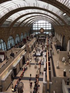 Estava vendo fotos das minhas viagens (faço isso frequentemente), e encontrei uma vista do alto do salão do Museu d’Orsay, em Paris. Pra além de ser um projeto incrível e um museu fantástico, a foto é naturalmente bonita por causa do ângulo em que foi tirada. Estou longe de ser uma fotógrafa muito talentosa, mas o local de onde eu observava o salão do museu permitiu que o ponto de fuga da cena ficasse claramente destacado.
